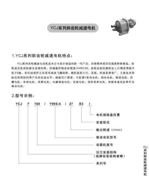 YCJ系列齒輪電機(jī)是按照J(rèn)B/T6442-92設(shè)計(jì)制造的新一代產(chǎn)品,本系列產(chǎn)品屬國內(nèi)先進(jìn)產(chǎn)品。主要技術(shù)指標(biāo)達(dá)到國際同類產(chǎn)品的先進(jìn)水平,并根據(jù)用戶需要,,可配置制動(dòng)電機(jī)、輥道電機(jī)、防爆電機(jī)、單相電機(jī)、變頻電機(jī)等各類電機(jī)