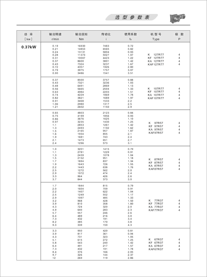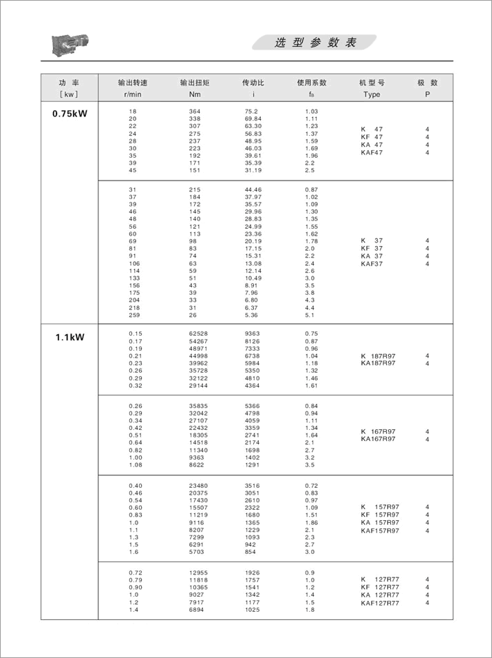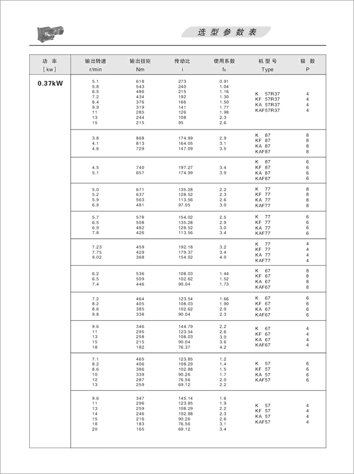 K型螺旋錐齒輪減速器具有體積小、傳遞轉矩大,效率高,工作平穩,壽命長,所配功率范圍廣,輸出轉速多,安裝形式多等特點,有7種型式,9種規格。