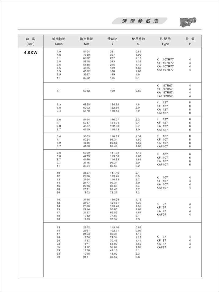 (1)型號有:K、KA、KAB、KF、KAF、KAT、KS型7種。
