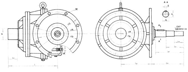 | 型號 | L | Ll | L2 | L3 | L4 | L5 | L6 | d | ¢A | ¢B | ¢C | ¢D | ¢H | E | F | G | M | N | 重量 | E×T |