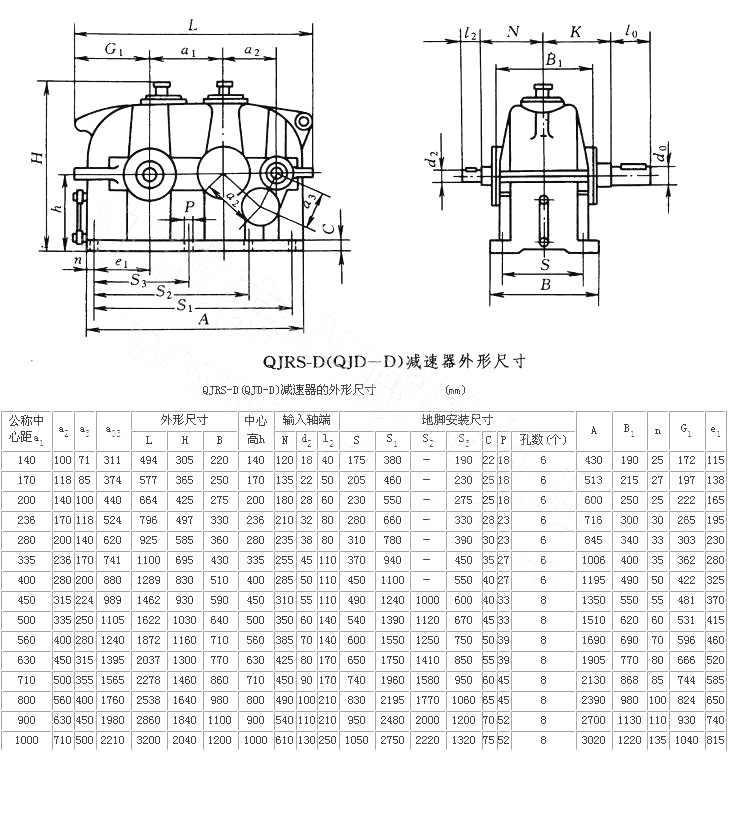 QJRS-D中硬齒面減速機圖紙尺寸