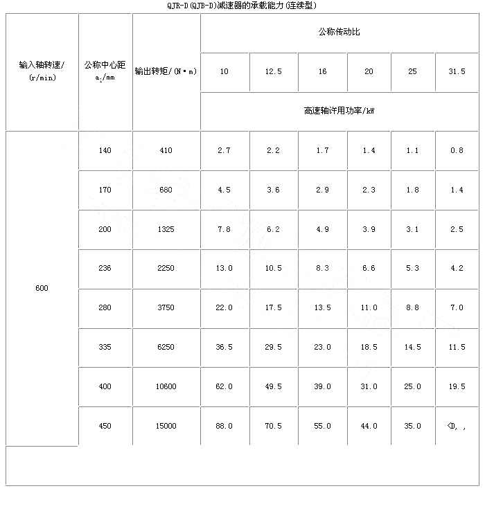 起重機底座式減速器是在三支點減速器的基礎上派生出來的。因此QJ-D型減速器的工作條件、主要技術參數、承載能力和輸出軸端最大允許徑向載荷與三支點減速器相同,其它有所不同。